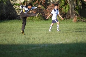 Oya, dalam pertandingan, ada kalanya sang kiper harus mengembalikan bola ke lapangan dengan caranya sendiri.