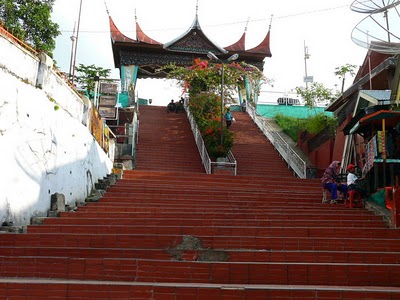 Pusat kegiatan disini ada di sekitar jam gadang. Disekitar jam gadang ada yang namanya Pasar Atas. Disini tempatnya kalau mau beli sepatu, baju, dan benda-benda yang bisa dikategorikan agak bersihan. Mengapa begitu? Nanti kita lihat lanjutannya. Di sekitar jam gadang juga adalah Plaza, mirip mall, tapi mungil nan mini. Jangan dibandingkan dengan mal-mal di Jakarta yang bikin pusing saking gedenya. Ada juga balai sidang Bung Hatta, yang kalau nggak salah adalah tempat emak saya wisuda (saya nggak ikut.. huhuhuhu…) Dari pasar atas, kita dapat menuju tempat lain bernama pasar bawah. Nah, diantara pasar bawah dan pasar atas ini ada namanya pasar lereng. Hayooo… Ya ibarat gunung lah, dari bagian atas ke bawah mau turun pasti via lereng. Ya begitu kira-kira. Nah kalau yang dijual di Pasar Atas adalah barang yang agak bersihan, maka yang di pasar bawah adanya ikan asin, tomat, beras, dan sejenisnya. Jangan khawatir soal harga, bisa ditawar. Nah, kalau yang atas agak bersihan, dan yang bawah agak kurang bersihan, maka di pasar lereng ada perifer-nya. Mau cari kaset bajakan, emas bajakan, alat-alat plastik murah, majalah bekas, poster, buku tulis, beha, celana dalam, boleh cari disana. Oya, dari pasar atas ke pasar bawah juga bisa via Jenjang Gudang, nanti keluar di dekat penjara lama. Lalu kalau dari pertengahan pasar lereng bisa turun di Jenjang Lereng. Curamnya minta ampun, dan anak tangganya kecil-kecil, so be carefully. Di ujung dari pasar lereng juga ada jenjang yang lebih elit, tapi saya lupa namanya, maaf.. hehehe..