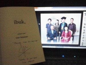 Sejak kerja, saya mungkin tambah gila pada buku. Kalau kuliah, saya hanya beli buku (non buku kuliah) kalau harganya dibawah Rp. 30 ribu. Nah, karena mulai kalap buku, maka saya nggak mengabaikan Jakarta Book Fair. Salah satu sisi positif saya pindah kerja ke Cikarang adalah akses yang lebih cepat ke ajang beginian. Karena sudah baca di twitter, saya lantas memburu stand Gramedia dan sebuah novel berjudul singkat “IBUK”.