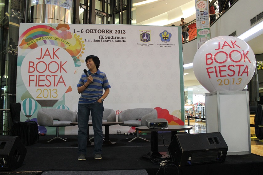 Jadi ceritanya saya, Kevin Anggara, dan Irvina Lioni menjadi pembicara dalam talkshow Dari Blog Jadi Buku yang dihelat oleh penerbit Bukune dalam event JakBook Fiesta 2013. Adapun lokasinya adalah di FX Senayan. Lebih tepatnya lagi di lantai 3, persis di bawah lantainya teater JKT48. Saya sendiri ada disana dalam karena buku saya Oom Alfa, Kevin disitu juga karena bukunya Student Guidebook For Dummies, sedangkan Irvina mewakili komunitas Kancut Keblenger dengan buku Digital Love. Kebeneran saya baru di-approve masuk ke KK sekitar 1 bulan ini.