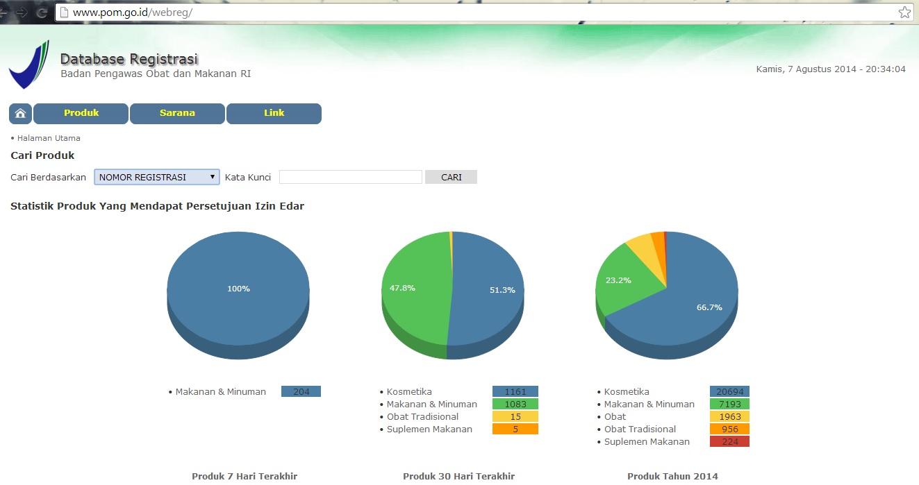 Itu baru 2014 saja loh. Bulan puasa aja baru lewat, 17 Agustus juga belum, tapi jumlah produk yang mendapat persetujuan sejumlah itu. Atau kalau mau lebih seru, cuma masukkan query ‘MD’ di pencarian. Saya menemukan angka 30.655 data hanya untuk MD saja! Kalau mengetik ML, maka yang nongol adalah 28.211 data! Hampir 60 ribu macam pangan yang beredar di Indonesia Raya ini. Sekilas info, MD itu kode nomor yang diberikan untuk pangan yang dihasilkan di dalam negeri (domestik), sedangkan ML itu pangan yang dihasilkan di luar negeri dan kemudian diimpor masuk ke Indonesia. Please note bahwa itu hanya yang terdaftar di Badan POM saja.