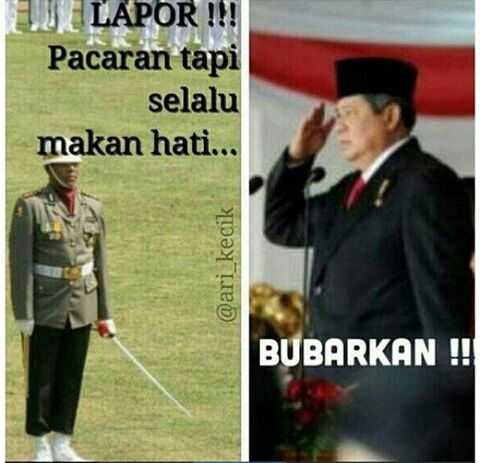 13. Sebagai komandan upacara, kita harus meneriakkan aba-aba secara lantang. Tapi selantang-lantangnya, tolong jangan meneriakkan hal lain selain aba-aba. Jangan bilang ke salah satu peserta, “Aisyah, akuuu cintaaa kamuuuu”. Jangan juga malah bilang ke inspektur, “Bapakkkk tampaannnn dehhhh”. Dan satu hal yang pasti, jangan meneriakkan dagangan seperti di pasar, “yo behanya sepuluh tiga, sepuluh tiga, sepuluh tigaaaaa!!!”