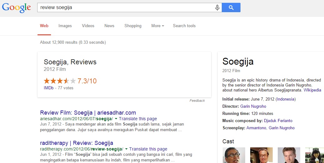 Plus, saya juga menulis beberapa review film yang lumayan cepat. Kayak Soegija yang saya tulis langsung pada hari pertama, demikian pula Cahaya Dari Timur pada hari kedua. Jadi ternyata taktiknya ya begitu, sih.