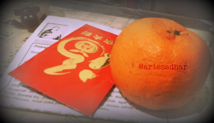 Nah, kebetulan yang hebat adalah saya datang ketika Gereja Kemakmuran sedang berbagi kemakmuran dalam rangka Imlek. Ini adalah pertama kalinya dalam hidup saya ada pemberkatan jeruk. Wow! Karena saya adalah pecinta gratisan, maka meski saya bukan Tionghoa–apalagi Tiongkok–saya tetap ngantre jeruk dan angpau yang dibagikan oleh Romo yang sudah didandani mirip Wong Fei Hung. Ciat! Jeruknya lumayan buat santapan ringan. Angpaunya ada duitnya kok, walau hanya cukup untuk bayar TransJakarta jam 5 pagi. Namun yang lebih dari itu, ada kertas berisi Sabda Tuhan. Yang saya dapat berbunyi: