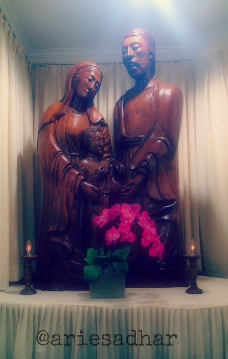 Masih lanjut dengan #KelilingKAJ, mumpung masih niat. Seperti biasa, rute ditentukan oleh arah angin. Kali ini angin mengarah ke selatan, dan dalam rangka persiapan bangun pagi minggu depan (tugas balkes ke Cikarang-red), maka Gereja yang dituju mesti dekat dengan jalur kereta api. Dan pilihan jatuh kepada Gereja Keluarga Kudus Pasar Minggu. Sebagai catatan, di Keuskupan Agung Jakarta, nama Keluarga Kudus juga dimiliki oleh Rawamangun. Memang nama idola.