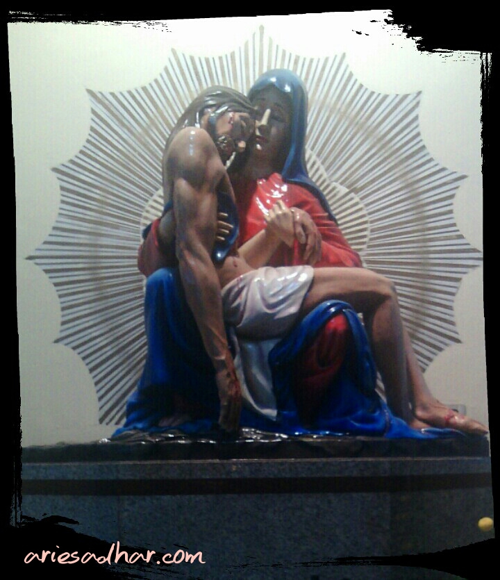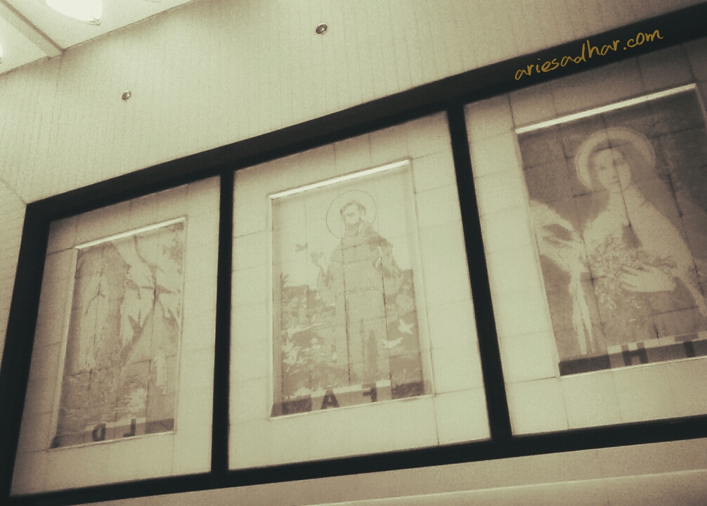 Gereja Paskalis sekarang masih dalam renovasi, jadi Bunda Maria-nya akrab dengan terpal karena renovasi persis di belakangnya. Sekali-kali bolehlah menyambangi Gereja ini karena itu tadi, besar dan mudah diakses. Bukan apa-apa, saya mulai kehabisan TKP untuk diakses dengan effort ringan. Heuheuheu.