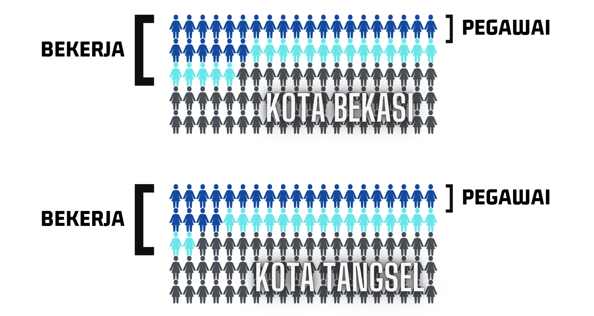 Lebih lanjut lagi tampak fenomena yang menarik di Kota Bekasi dan Tangerang Selatan karena persentase perempuan bekerja lebih tinggi daripada perempuan yang mengurus rumah tangga. Artinya? Ada begitu banyak istri yang juga harus bekerja demi kelangsungan rumah tangga. Kita berbicara angka 300.627 perempuan bekerja di Kota Bekasi dan 161.687 di Tangerang Selatan. Tentu tidak semuanya ibu muda, tetap saja angkanya yang besar.