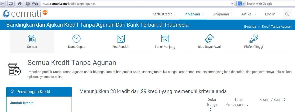 Untuk manusia dengan gaji 1,9 juta (dan nggak naik-naik) kayak saya, keberadaan cermati.com lantas menjadi penting karena saya bisa membandingkan dan mengajukan Kredit Tanpa Agunan dengan pilihan yang terbaik. Kenapa, gitu? Yes, karena di cermati.com ada pilihan pencarian yang bermacam-macam. Mau yang dana cepat? Ada. Fee rendah, tenor panjang, bisa bayar awal, hingga yang plafon tinggi tinggal klik dan kita akan ditunjukkan pilihan-pilihan produk keuangan dari berbagai bank. Ini penting karena untuk aspek keuangan ini banyak orang yang kadang nekat tapi nggak tahu, banyak juga yang lantas melewatkan banyak hal karena takut ambil risiko, ya, karena nggak tahu itu tadi.