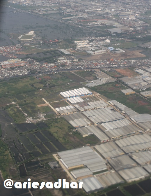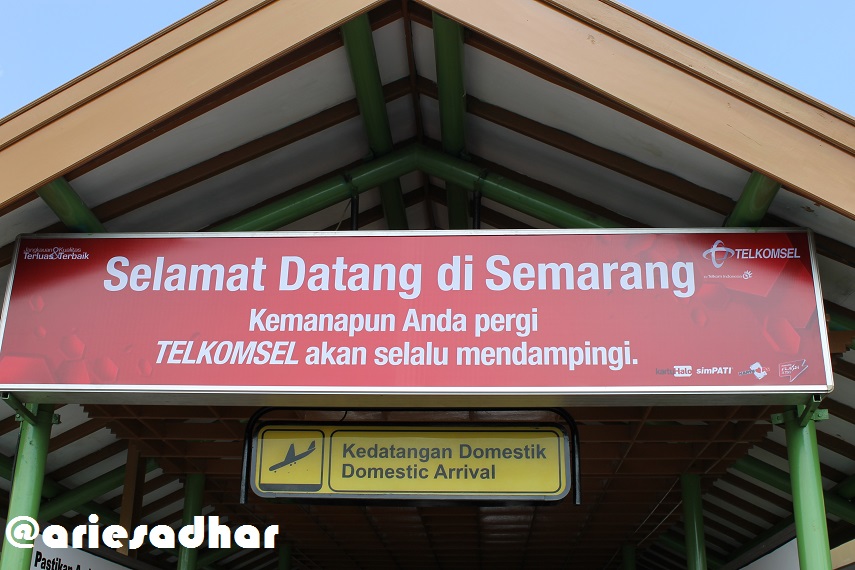 Harapan saya untuk motret Kota Semarang dari langit kandas karena ternyata bandara Ahmad Yani ini langsung mlipir laut. Beda banget sama Jogja yang memperlihatkan profil kota sebelum mendarat. Ini laut, laut, sawah, lalu landasan. Rasanya bandara ini lebih besar dari Jogja, karena ngerem-nya nggak sekeras di Jogja, kalau menurut saya.