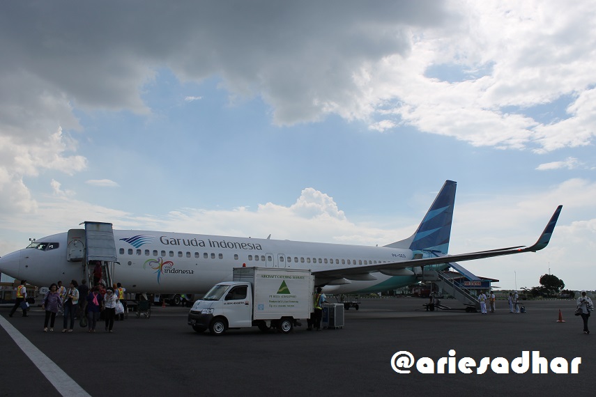 Sampai di landasan, turunnya tanpa belalai. Benda yang hanya ada di bandara nggak minjem kayak Minangkabau atau SMB II. Kalau minjem kayak Jogja atau Semarang atau Medan yang Polonia, ya nggak ada. Tanda minjem? Lihat aja kalau ada menaranya tentara, itu tandanya bandara masih minjem. Minjem sejarah setidaknya.