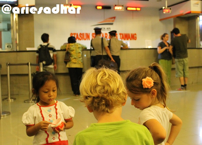 Menjelang gelap, saya masuk kembali ke Tawang, dan bertemu dengan seorang lelaki dengan tas besar lagi foto-foto di depan tulisan Stasiun Tawang. Dia minta tolong saya mengambil fotonya, pakai camdig kecil, lebih bagus dari Brica Ambon yang pasti.